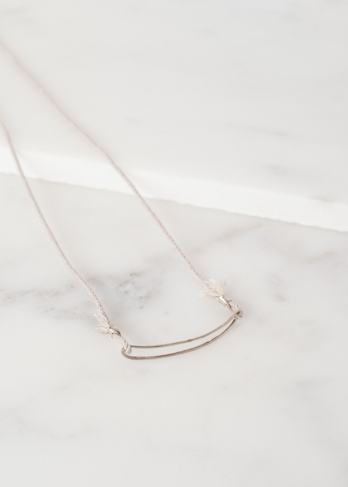Rustic yet lovely, 1-100 jewelry gives an organic feel while maintaining an understated elegance. Bracelet 85 draws attention to the pendant with its silk wrap rope. Color Silver.