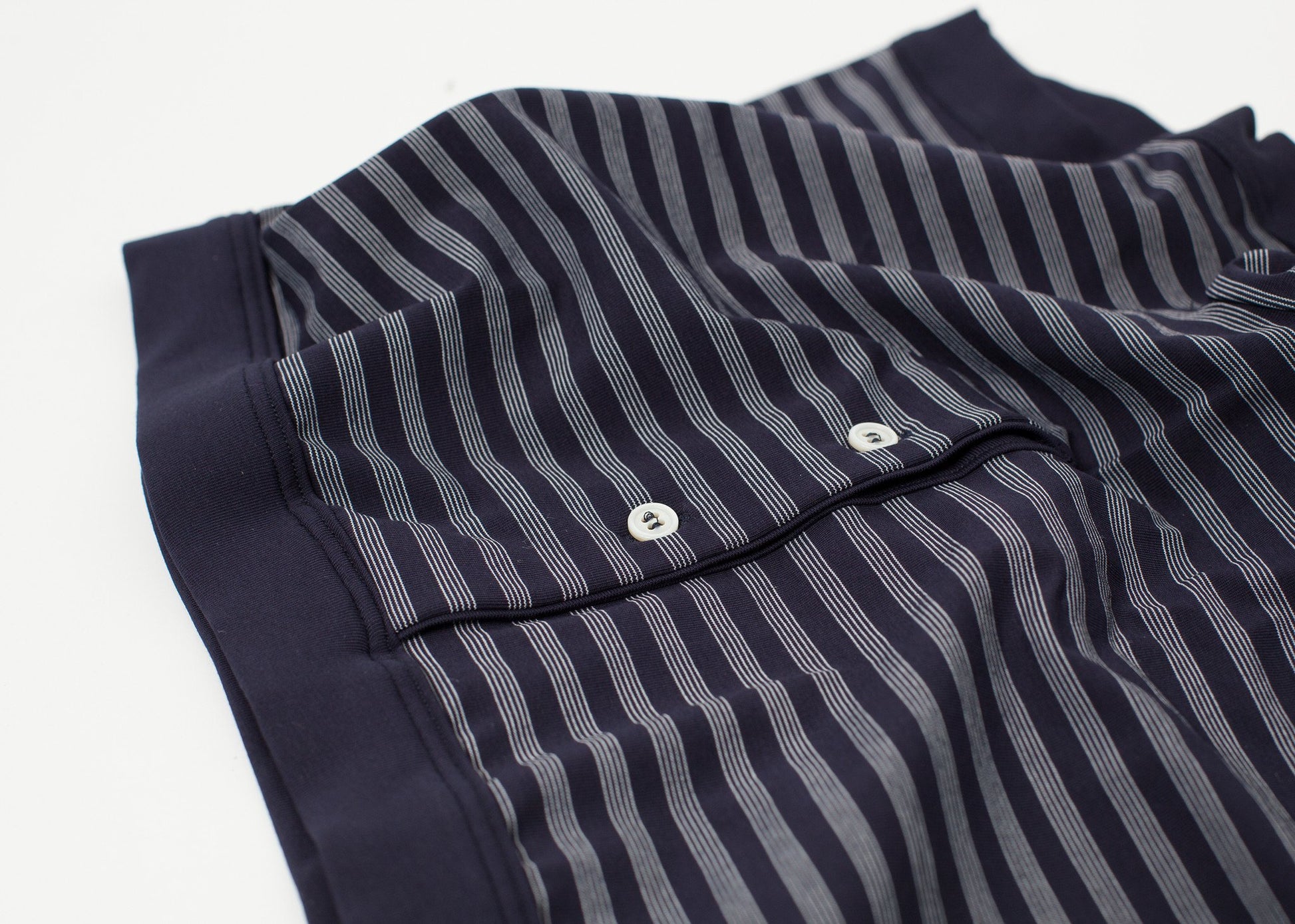This prewashed cotton trunk is composed of the finest gauge for the softest materials. Offers stretch and softness in wear. Elastic waistband for ease. Etiquette. Color Navy/Grey. 95% Cotton, 5% Elastane. Made in Italy.
